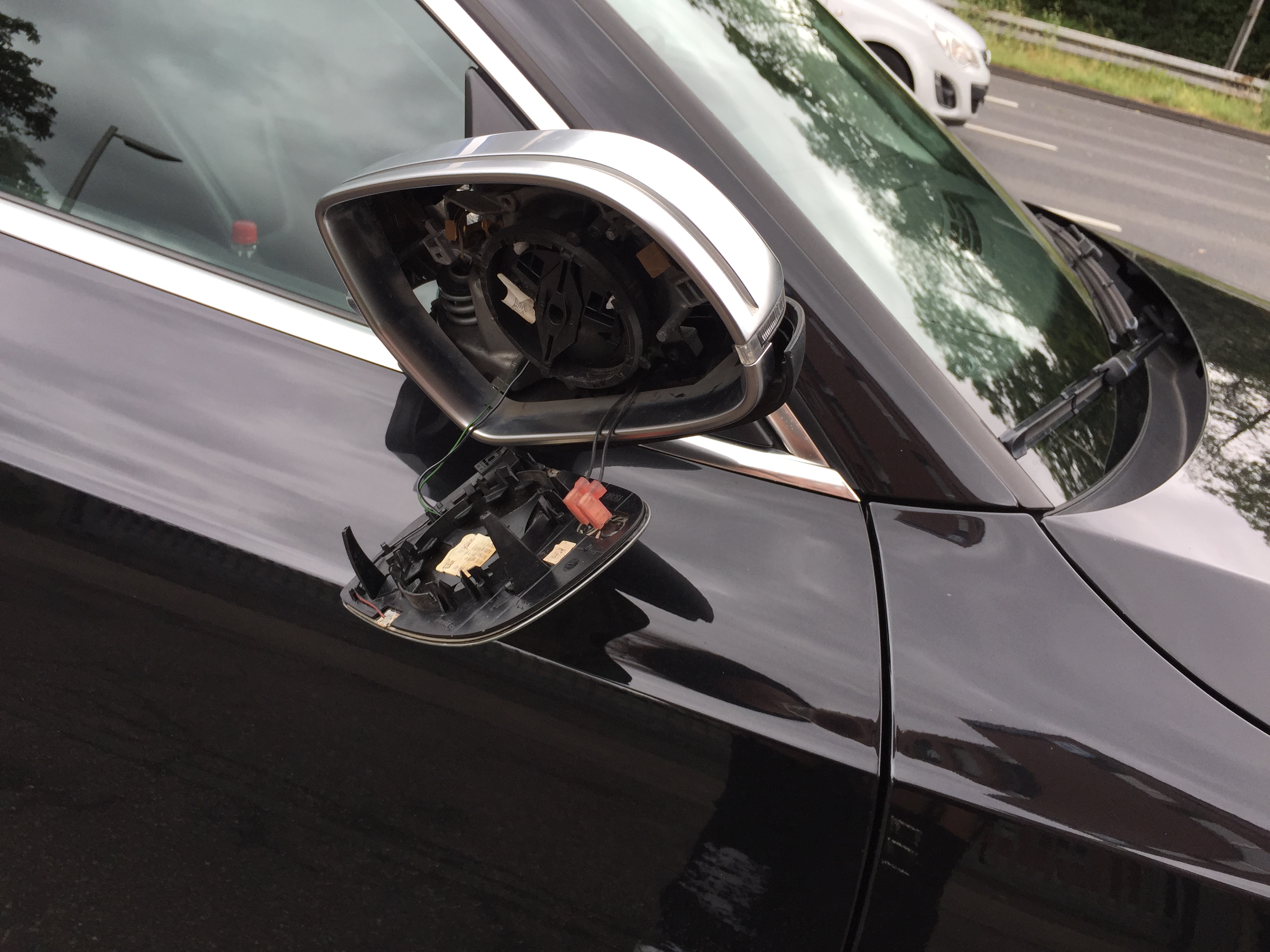 Dort wurde der Beifahrerspiegel ihres Autos an einer Ampel abgefahren und jetzt hat sie ein klein wenig Ärger mit den Autoversicherungen.
